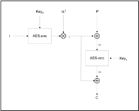 - Пошаговая схема шифрации блока в XTS