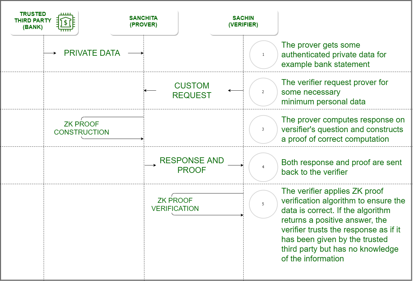- Обеспечение соответствия требованиям безопасности: подтверждение соответствия требованиям безопасности без раскрытия данных.