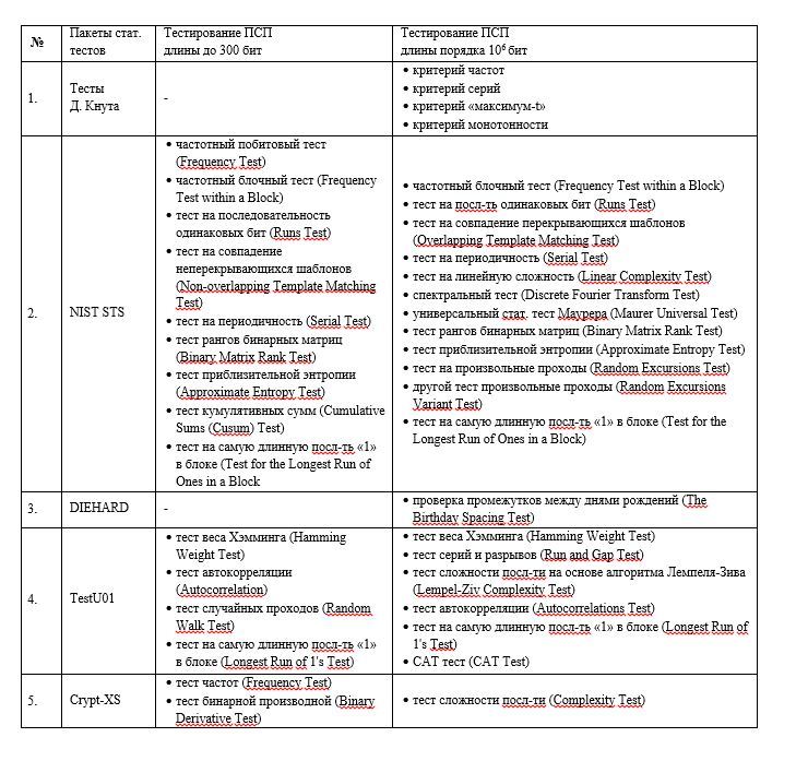 - Основные тесты NIST STS